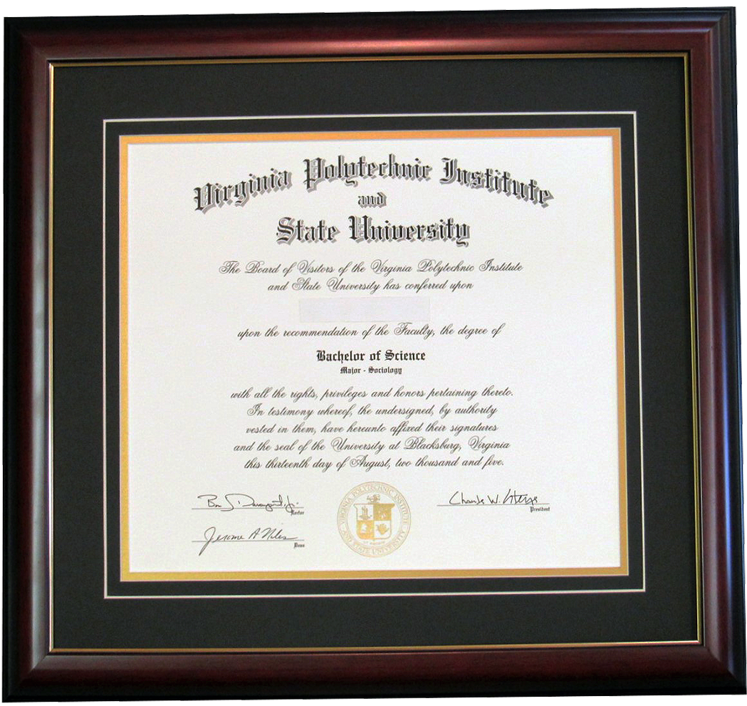 The Executive #4 $169.95 Mahogany finish wood frame with gold lip, black V-groove top mat with gold foil inner matt, archival matting and backing, regular glass, wire hanger and bumpers on the back, wall hanger included